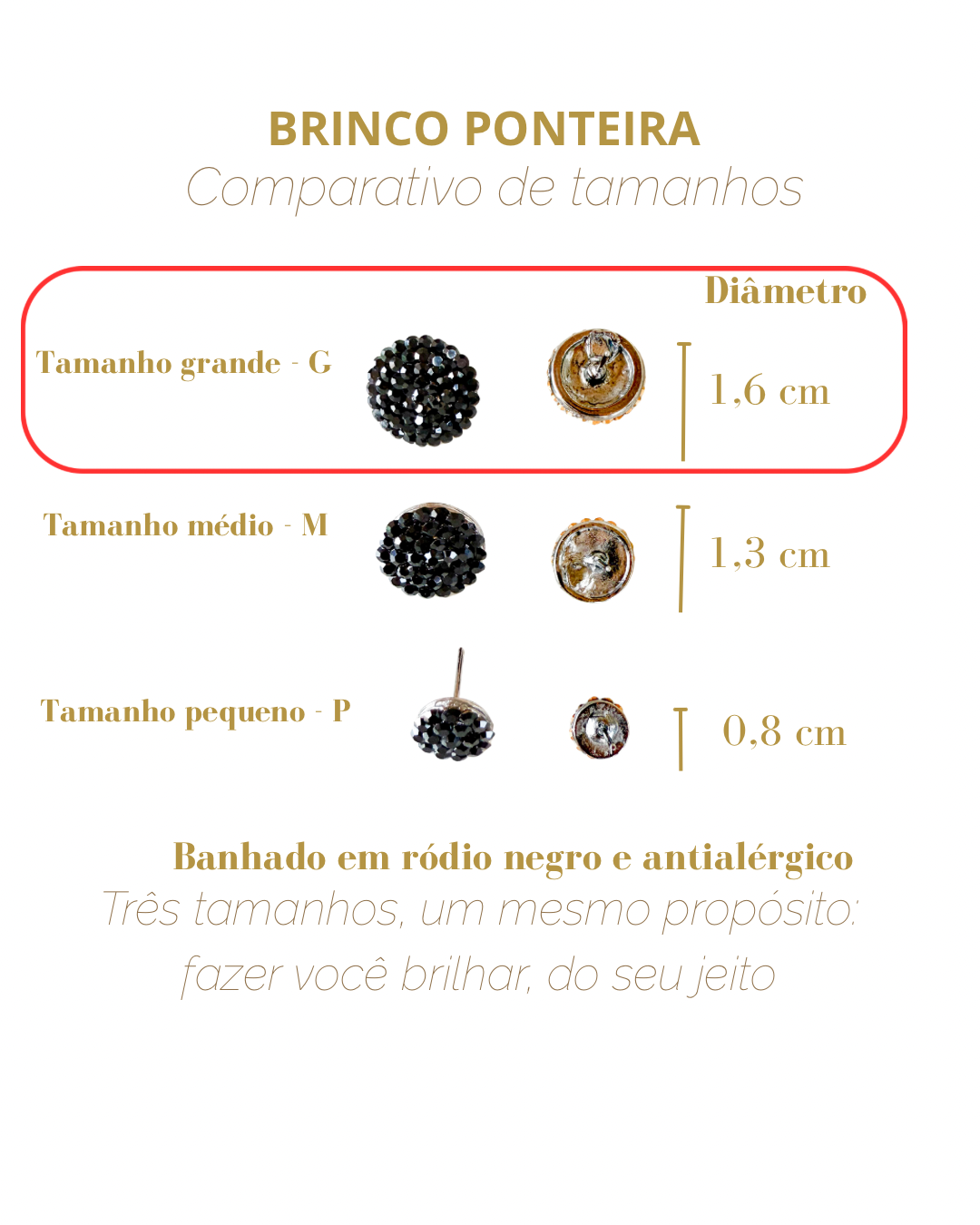 Banhado em ródio negro: acabamento premium, brilho duradouro e antialérgico.